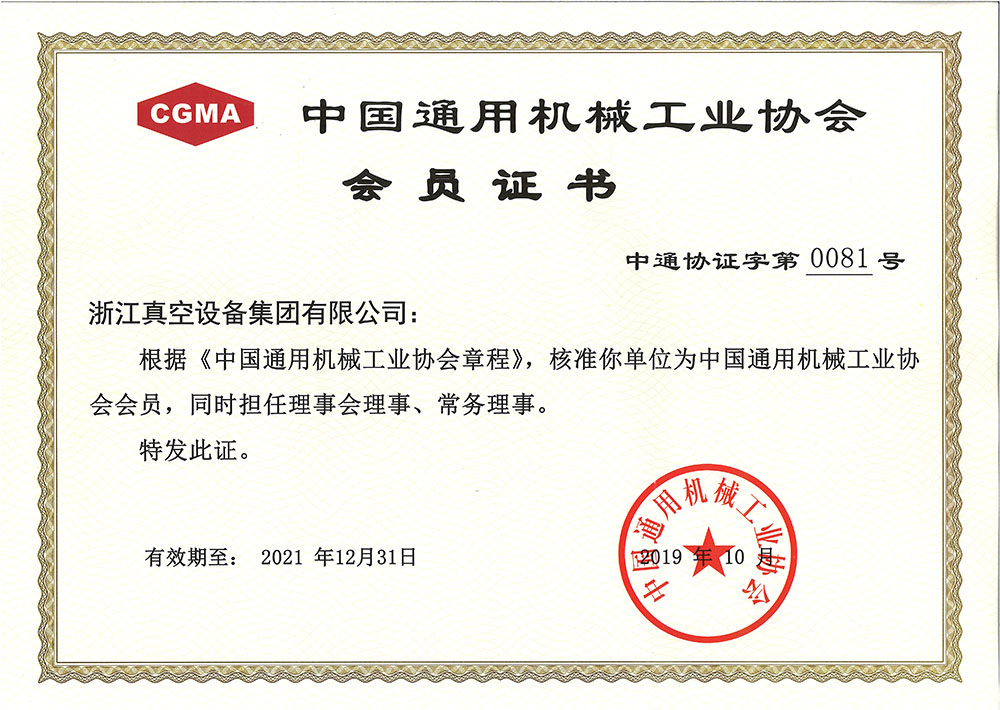• 中國通用機械工業協會會員證書